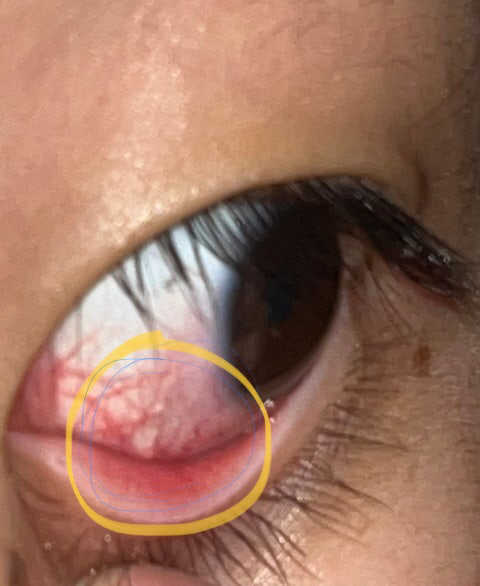 결막 아래에 액체로 채워진 낭종이 형성되는 경우로, 때때로 작아지거나 사라질 수 있습니다. 이는 비교적 흔한 상태이며, 대부분의 경우 해롭지 않습니다.