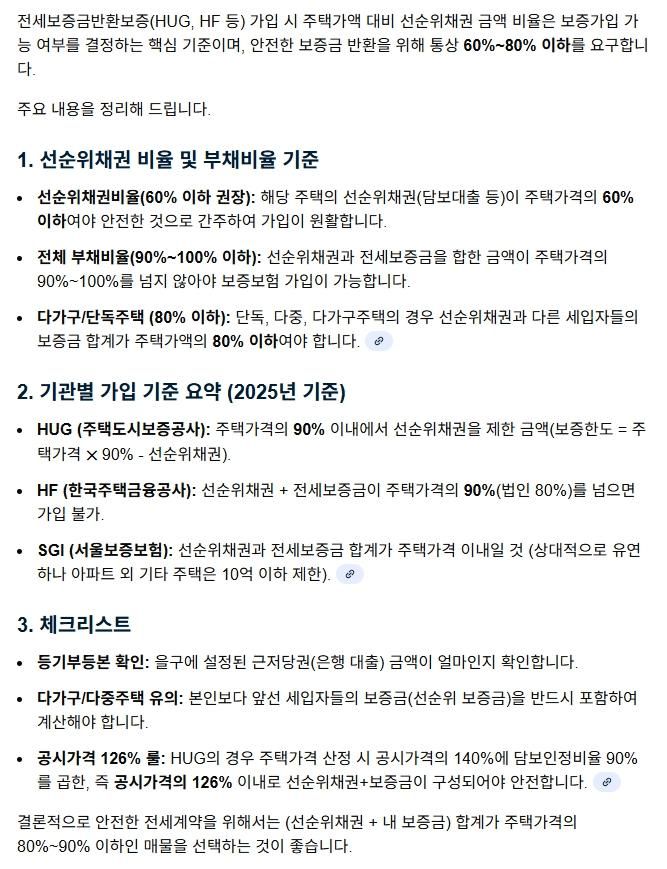 주택가액 대비 선순위채권 금액이 일정 비율 이하여야 한다고 하는데요.