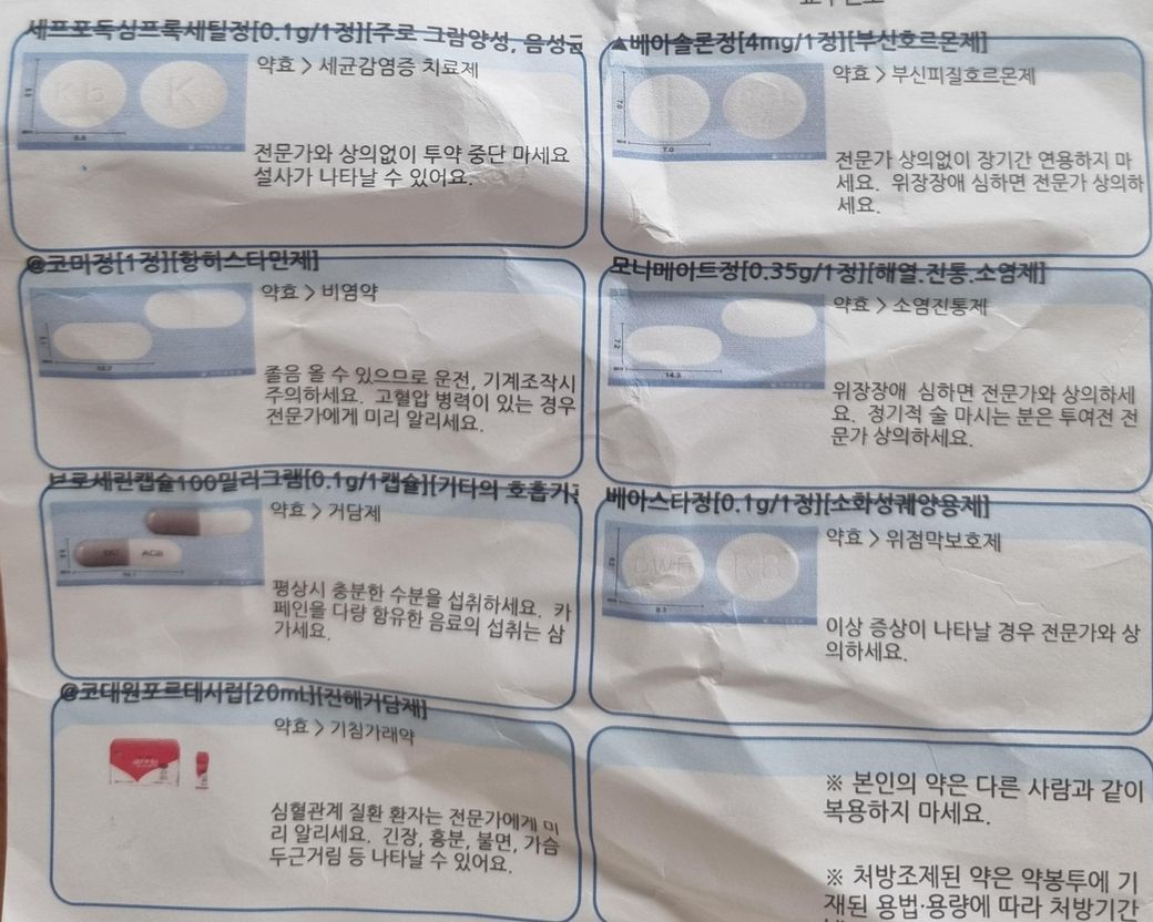 감기가 좀 더 진행돼서 부비동염이 되었다고 진단을 받아 며칠 동안 약을 복용했습니다. 오늘 점심에 마지막 약을 먹었는데, 아래의 약을 먹고 몇 시간 후 음주가 가능한가요?