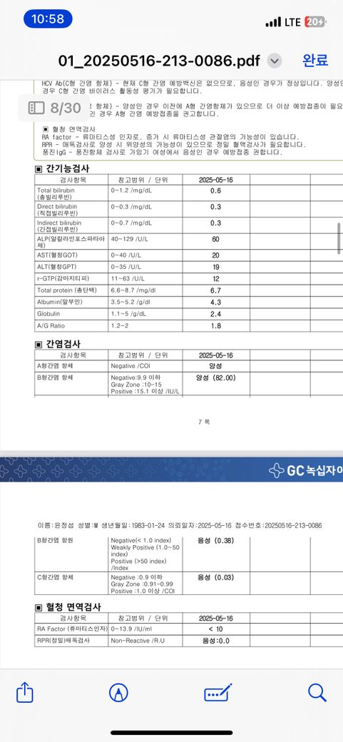 올해 피검사에서 남편 수치가 이상한게 있네요.
