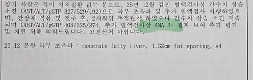 작년 12월 국가검진때 간수치가 높다는 말을 들었어요.