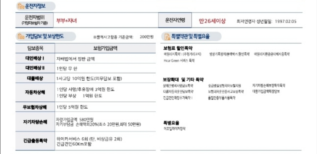 단기운전자범위 확대 변경하고 운전시 사고로 인한 동승자의 부상은?