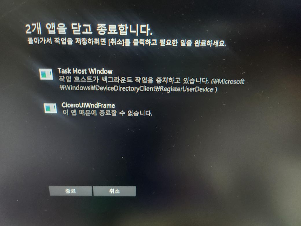 백그라운드에 켜져있는 프로그램을 미리 끄고 전원을 종료시키는것도 좋은 방법인 것 같습니다.