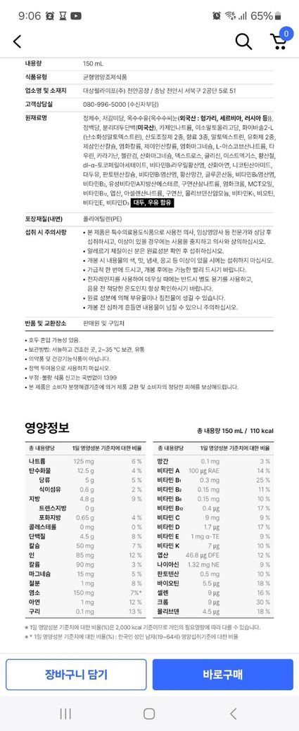 사진은 뉴케어 영양성분표예요