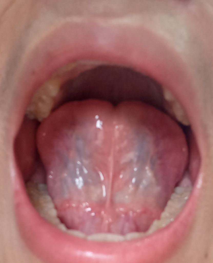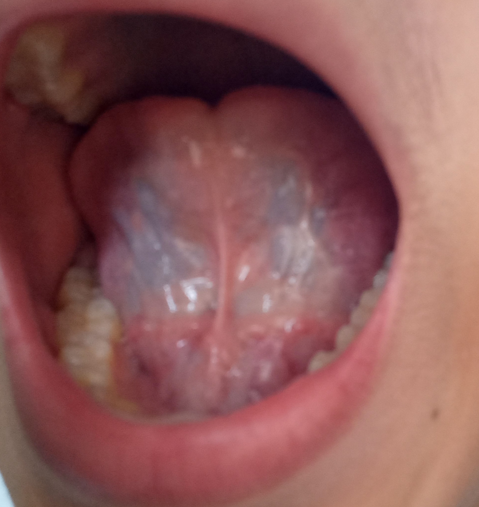 혀 밑에 검은 색은 정맥입니다 (설하정맥)