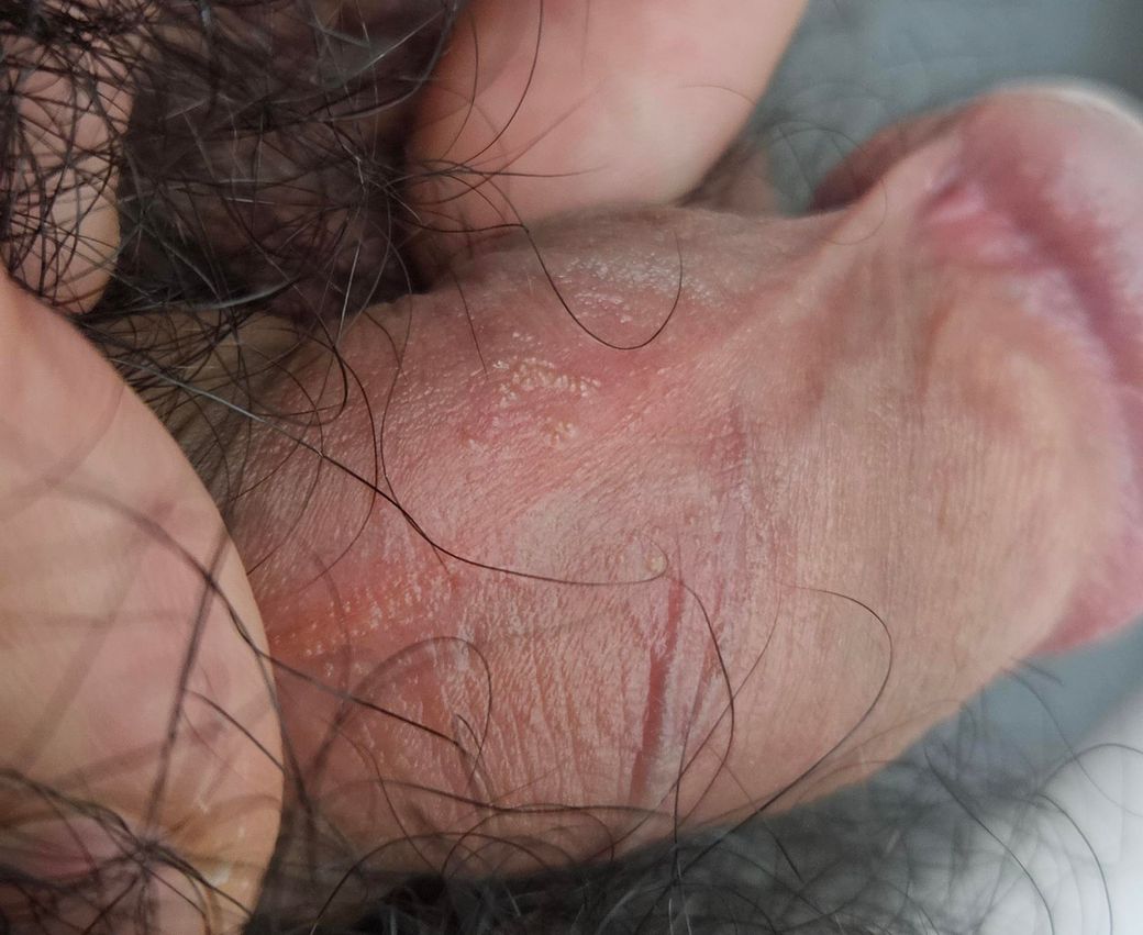 증상은 귀두 포피 안쪽에 수포가 나 있는 부위가 직접적으로 가렵지는 않으나 포피를 덮었을 때는 포피 끝이 간지러움이 있습니다.