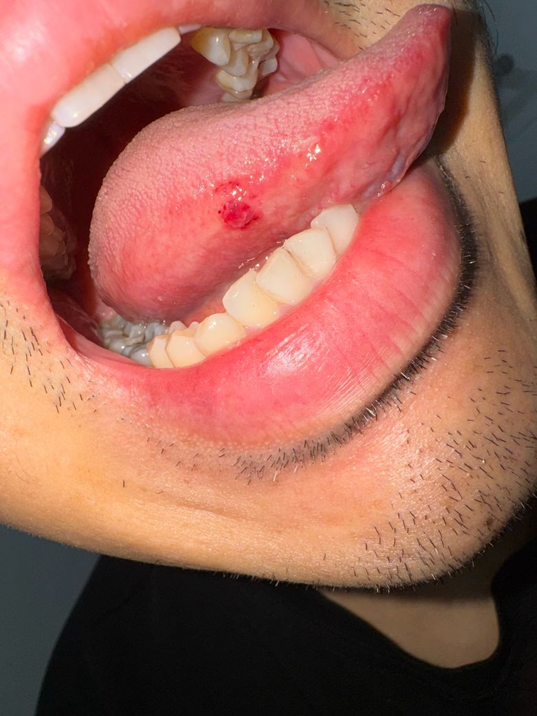 자다가 혀를 씹은건가요?