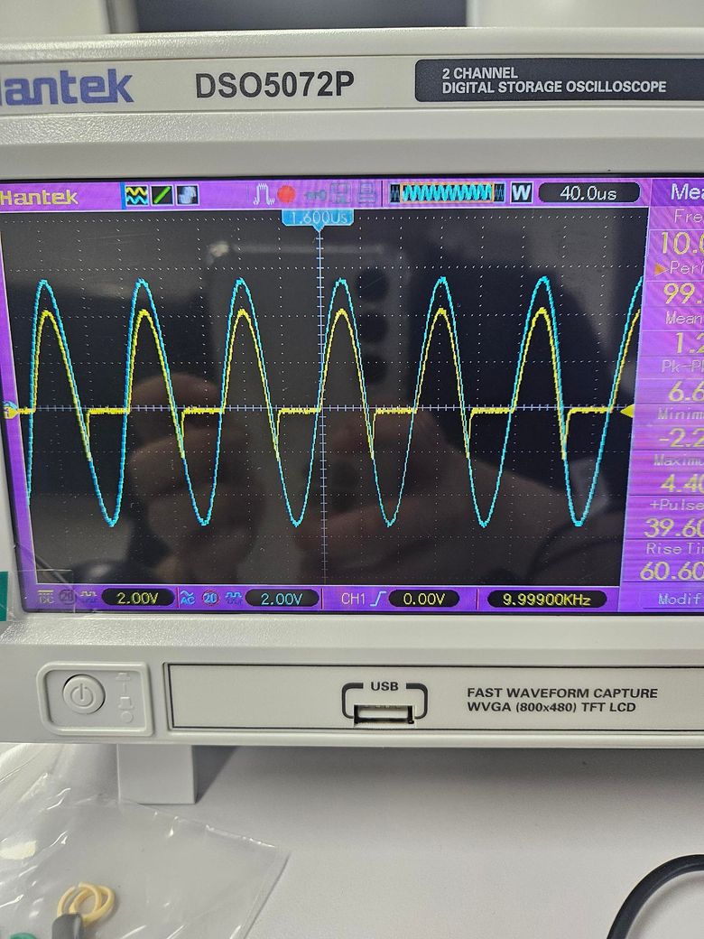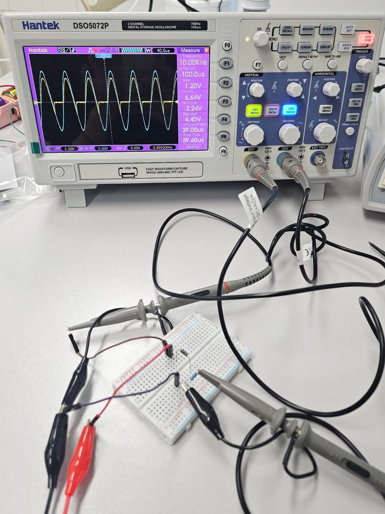반파정류회로에서 CH1의 전압파형이 중간에 잠깐 아래로 튀는 현상은 주로 접지 불안정이나 노이즈, 혹은 측정 장비의 접지 문제로 인한 것으로 보입니다. 특히 접지가 제대로 연결되지 않으면 신호 기준점이 흔들리면서 파형이 비정상적으로 나타날 수 있고, 회로 내 전자파 간섭이나 접촉 불량도 원인이 될 수 있습니다. 또한 반파정류 특성상 전류가 흐르는 순간과 끊기는 순간에 전압이 급격히 변하는데, 이 과정에서 측정 장비의 범위나 설정이 맞지 않을 경우 튐현상이 확대되어 보일 수도 있습니다.