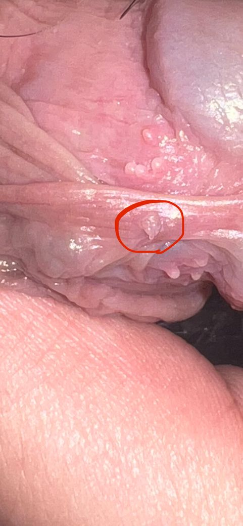 주변 돌기는 진주양음경구진증으로 어릴때부터 있던건데 동그라미 친 부분이 최근에 생겨서 곤지름이 아닌가 하고 질문 드립니다..