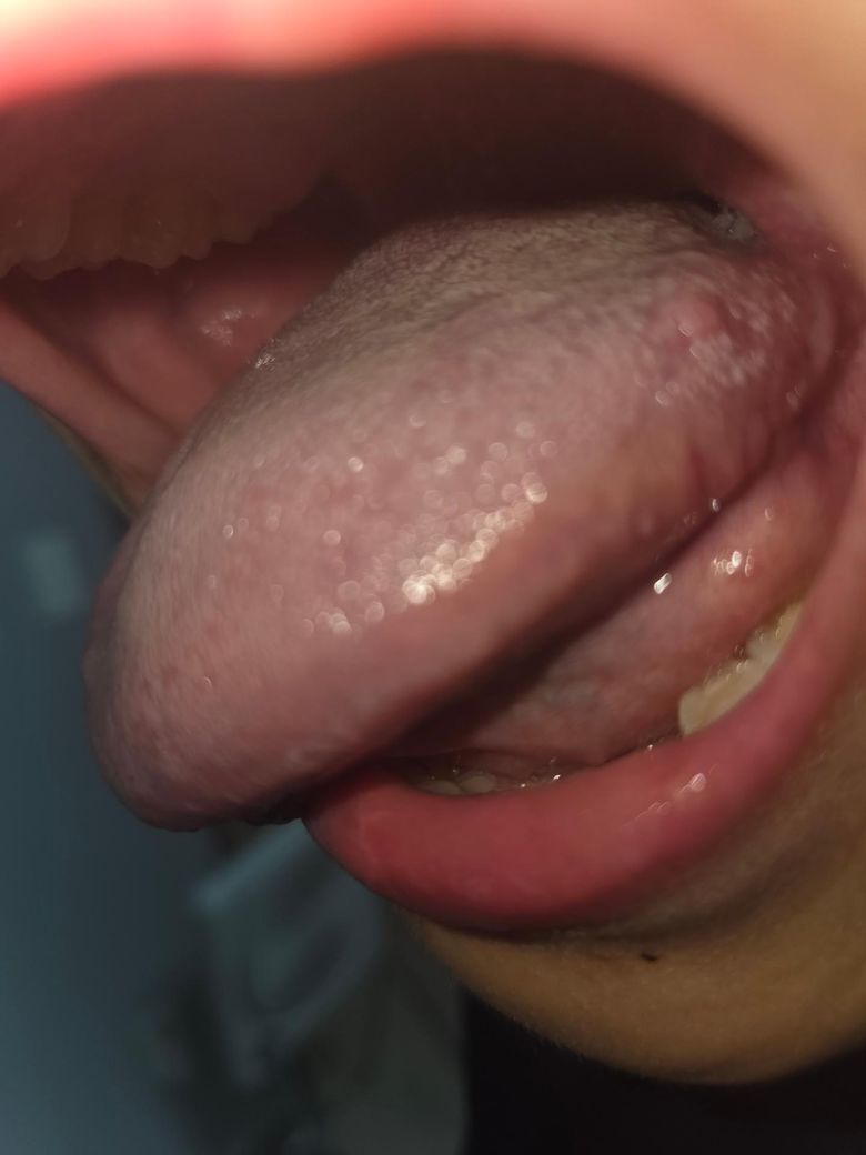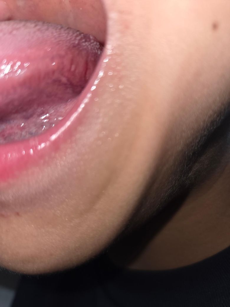 사진으로는 정확한 확인이 어려워 보입니다. 혀가 이빨이나 그 외에 다른 조직에 의해서 자극이 되었다면 해당 부위에 투면이 다르게 보일 수 있습니다. 이런 경우 혀에 가해지는 자극을 줄여준다면 해당 부위가 줄어들 수 있습니다.