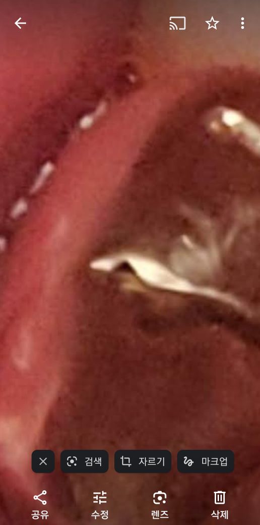 보여주신 사진으로는 정확한 확인이 어렵습니다. 다음번 스케일링, 치과검진 등 하실 때 문의해보시는 것을 권유 드립니다.