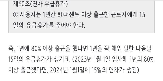 25년에 대한 연차는 근로기준법에 따르면 이래 처럼 나와 있는데 저 그럼 연차 16개 받을 수 있는건가요