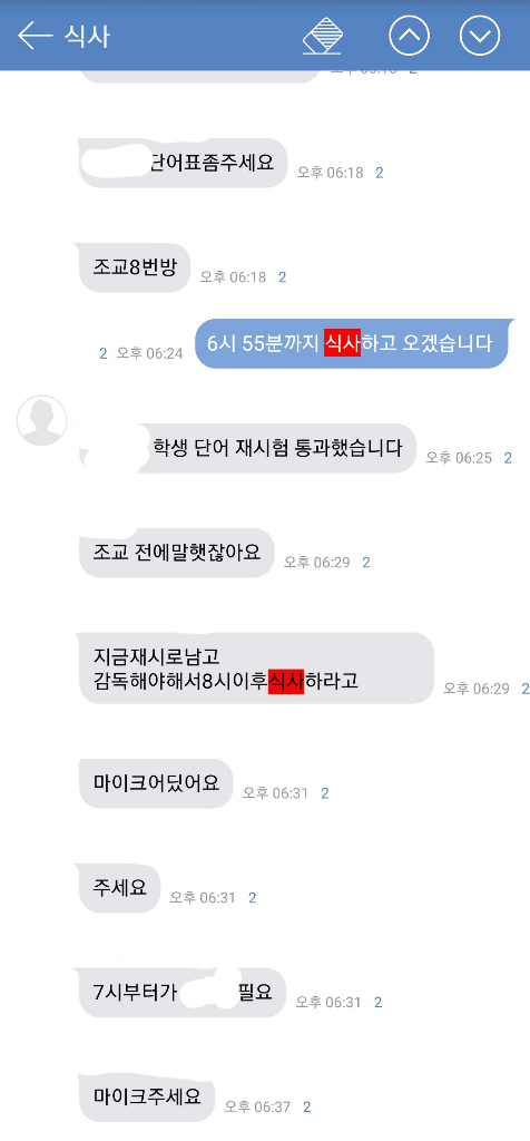9.5 ~ 11.2 기간에 기존에 작성했던 계약서에서는 30분 휴게시간을 준다고 써있는데 일이 바빠서 밥을 못 먹은 적이 엄청 많습니다. 그리고 밥을 먹어도 오후 8시 이후에 먹으라고 직원들이 있는 단체톡방에서 면박을 주기도 했습니다.