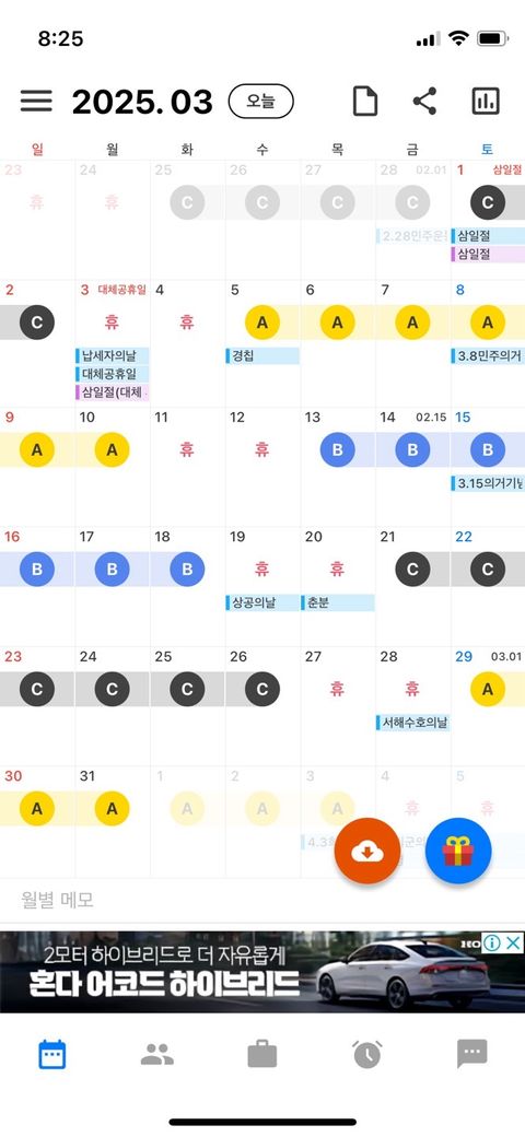 주휴일이. 토 .일 .이 아니고 6일 근로 하고 돌아오는 이틀이 주휴일입니다 아래 2025년3월 휴무표와 같이 주휴일과 3.2일 대체공휴일이 겹치는 경우 공휴일로 산정하나요 주휴일로 산정 되나요 참고로 휴일 특근산정은 일년 휴일 104에서 휴무일 빼고 나머지일수를 12개월로 나눠서 지급합니다 이런경우 3월2일 하루를 주휴 1일 대체공휴일1일 이렇게 중복해서 휴무일 2일로 취급해도 되나요?안되는 법적 근거 있나요?