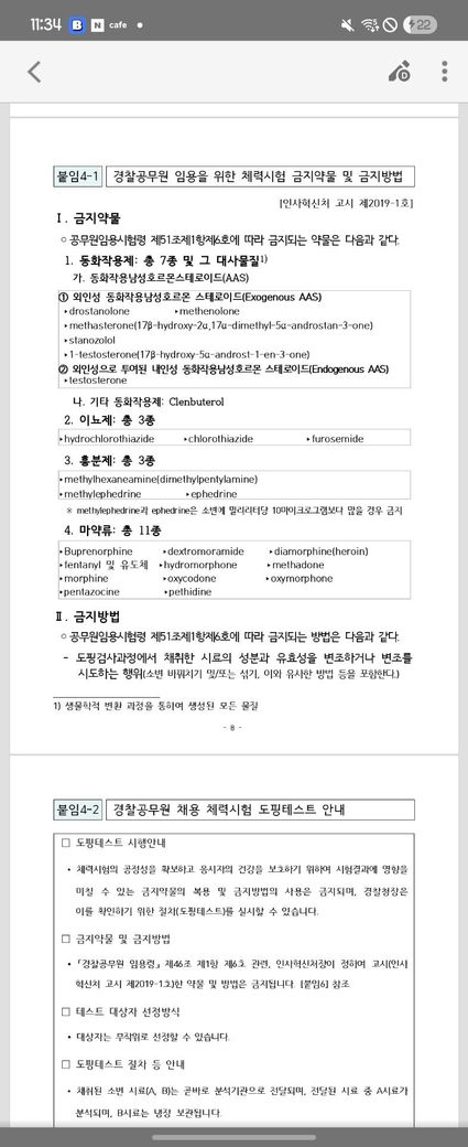 경찰공무원 체력 검사 예정입니다.