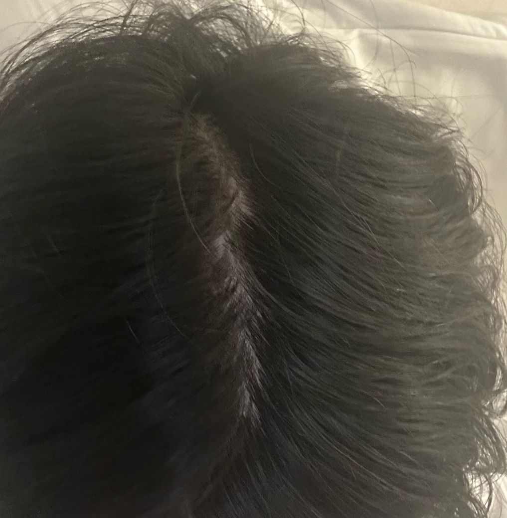 사진상 정수리가 살짝 넓어 보이지만 조명이나 가르마 영향으로 보이고요.