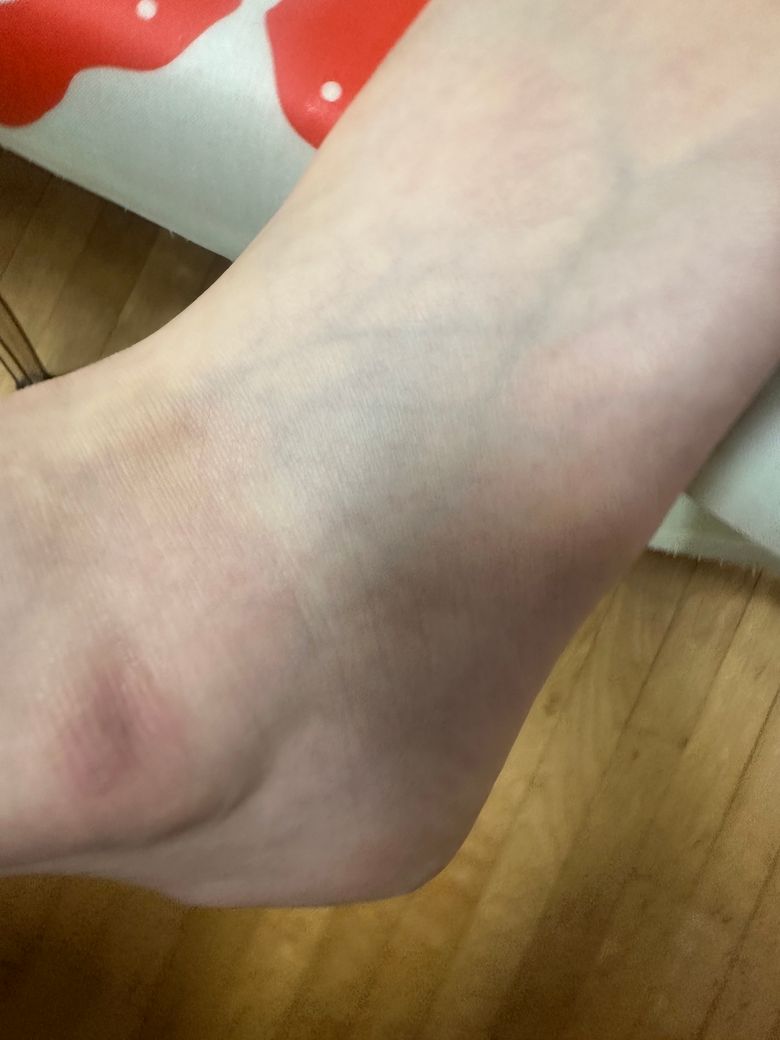 사진상 정확한 상태를 확인하기는 어려우나 혈관이 울퉁불퉁 튀어나와 있거나 발목이나 발등이 붓거나 통증 및 저림 이상감각이 있으시다면 혈액순환이나 정맥 또는 신경의 문제일 수도 있으니 해당 증상이 있으시다면 가까운 병원에 방문하시어 정확한 상태 검사 받아보시고 상태에 맞는 치료 및 처치등을 받아보시는게 좋을 것으로 생각됩니다.