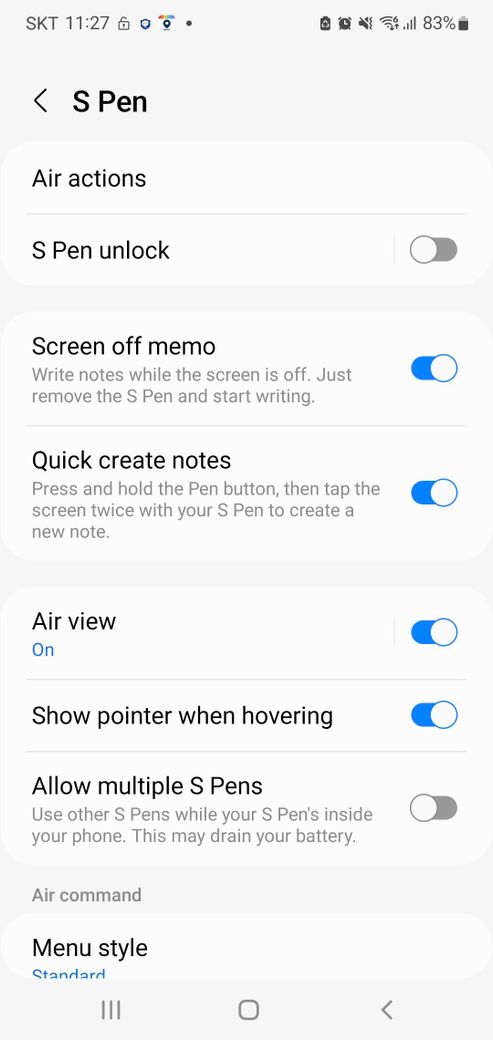 3. 이후 S펜 설정 화면도 한글로 바뀌게 됩니다.