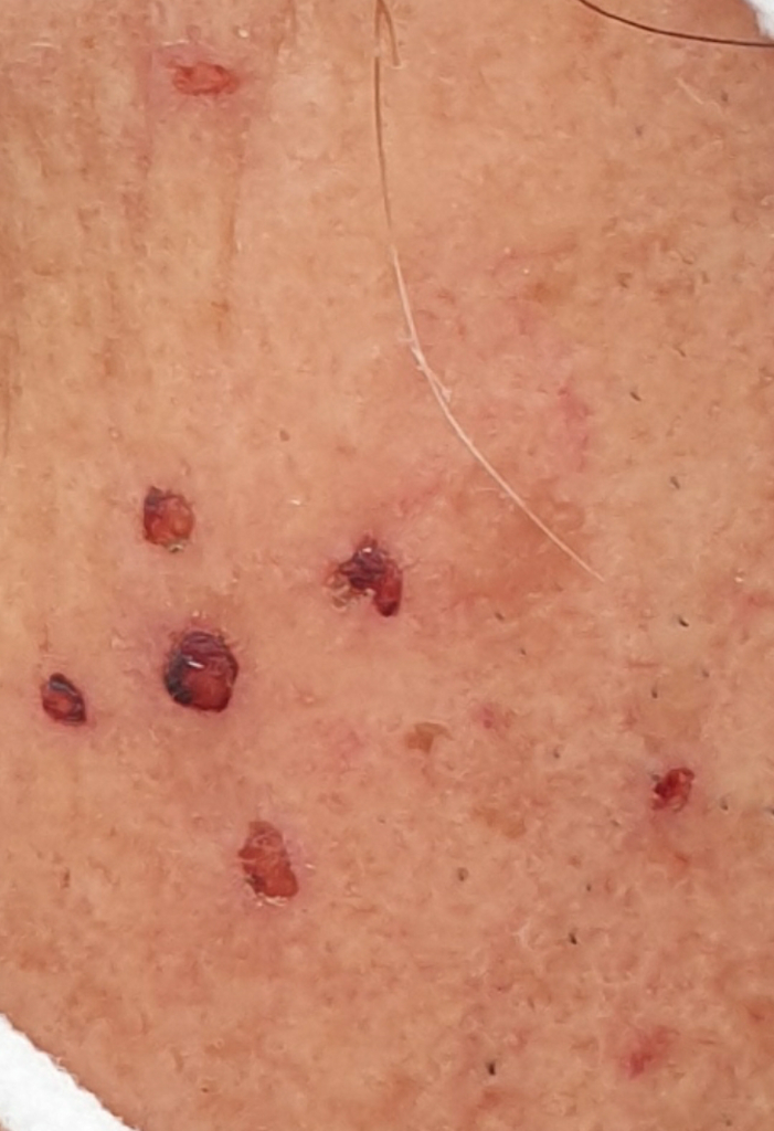 대상포진의 가능성은 낮으며 손톱으로 긁어서 생긴 상처일 가능성이 높은 것으로 보입니다.