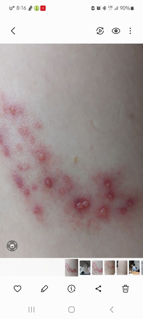 피부 병변의 경우 초기에는 알기 어려운 경우가 많아 경과가 중요한데요. 변화 양상으로 볼 때 대상포진 입니다.