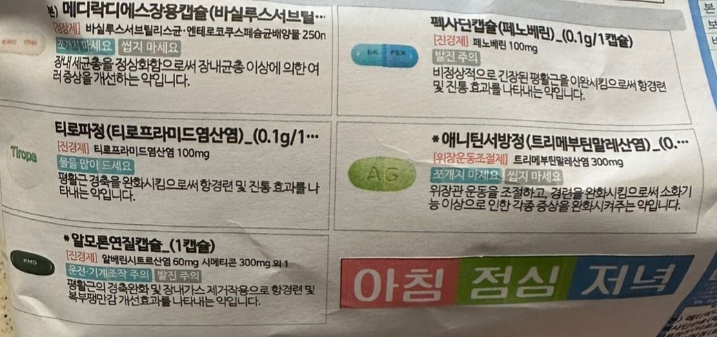 처방받은 약들은 겹치지 않아서 같이 먹어도 괜찮아요.
