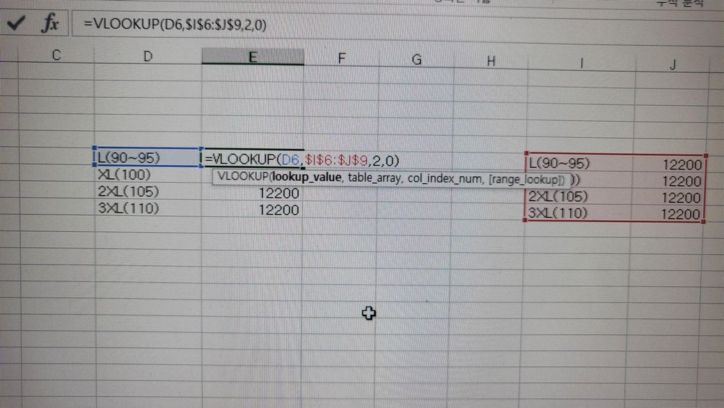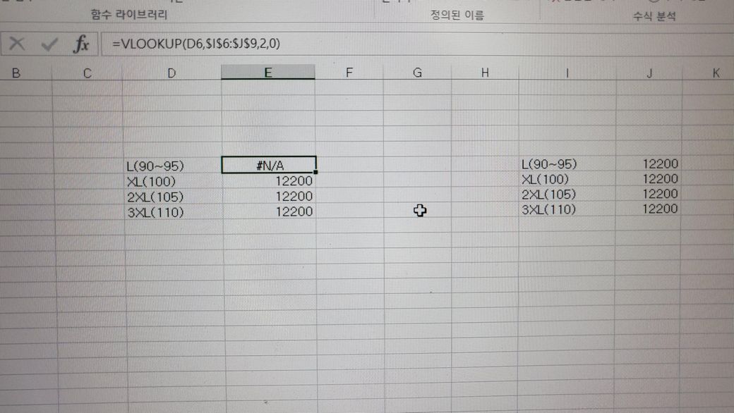 엑셀 VLOOKUP함수 사용시 #N/A 오류 표출