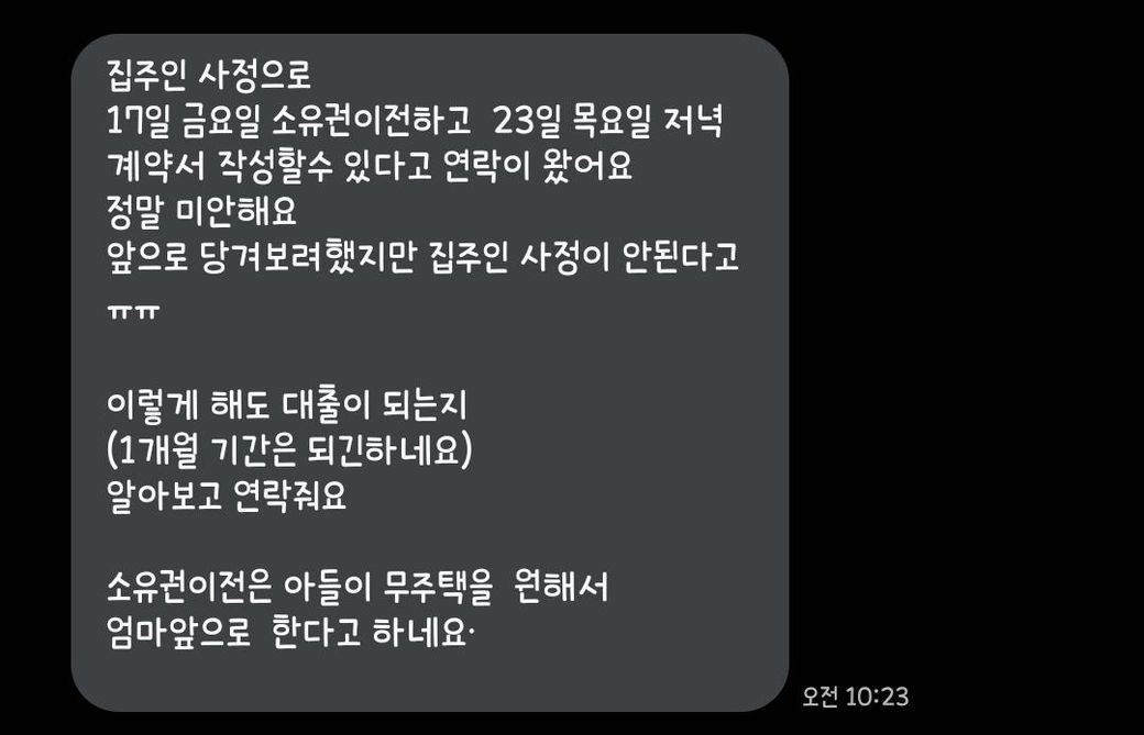 이번에 청년전용버팀목 전세자금 대출을 하려고 하는데 집주인 사정으로 원래 아들소유권 이었는데 무주택으로 변경을 원해서 어머니 이름으로 소유권을 넘긴다고 합니다.