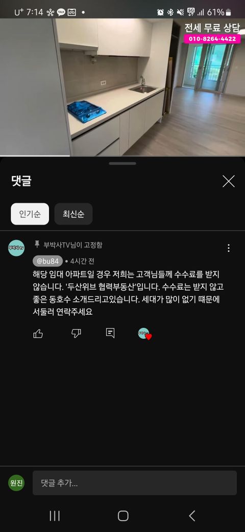 제목과 같은 내용입니다. 다른 부동산에는. 문의했을때 복비를 받는거 같은데 여기는 유투브 통해서 알게 되었는데 이럴수도 있나요?