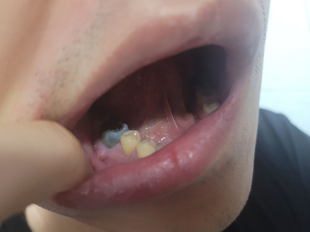 저 어금니자리는 이전에 신경치료 진행한 자리입니다.