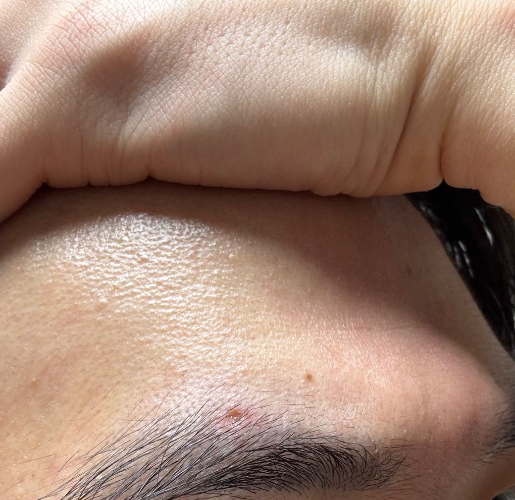 사진으로 정확한 상처 상태가 파악되진 않지만 우선 CO2 레이저로 눈썹 부위에서 여드름 압출을 받은 후 회복 과정에서 딱지가 떨어지면서 통증이 여전히 느껴지고, 상처가 약간 패여 있는 상황은 꽤 일반적인 회복 단계입니다. CO2 레이저는 피부에 작은 상처를 남기면서 그 부위의 피부를 재생시키는 과정이기 때문에, 압출한 부위에 통증과 패인 자국이 남아 있을 수 있어요. 이 통증은 시간이 지남에 따라 점차 줄어들고, 흉터가 남지 않도록 관리해 주는 것이 중요합니다.