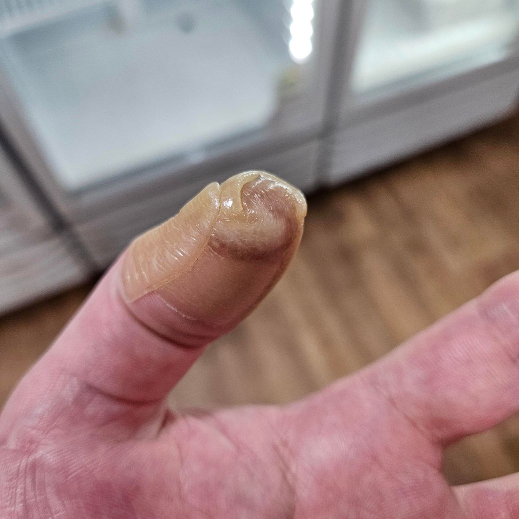 어제 일하다 회칼에 베였어요