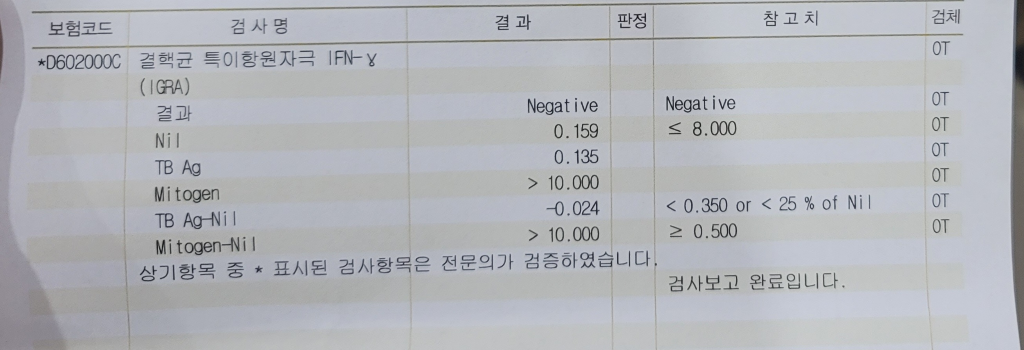 최종 결과만 보면 됩니다. 결국 negative로 나와서 잠복 결핵 음성 소견입니다. 정상이라는 의미이지요.