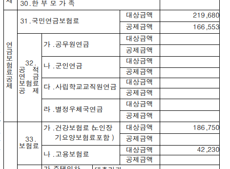 보험료 공제 부분 입력 시 대상금액과 공제금액이 나눠져 있더라구요.