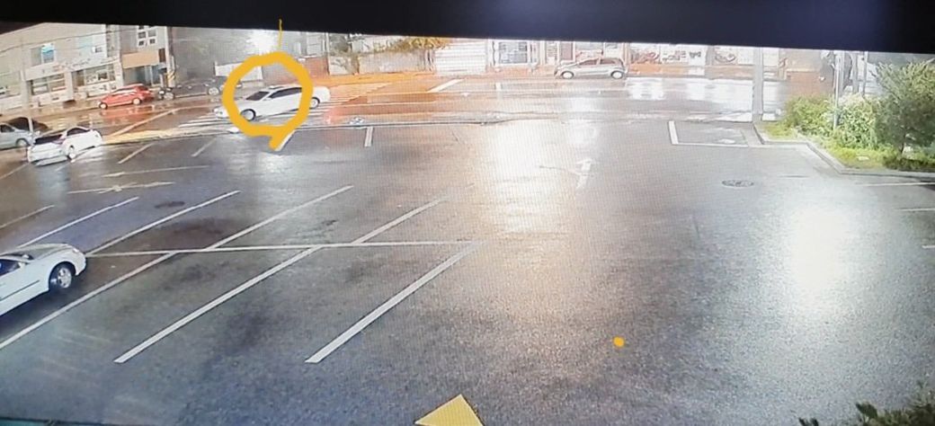위 사진의 차가 입구가 아닌 횡단보도쪽에서 주차장으로 진입하는 사진입니다.