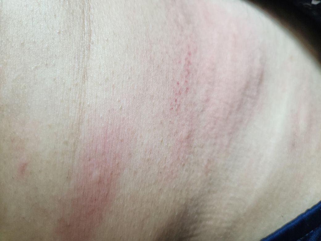긁으면 붉은 발진이 발생하고 가렵고 긁으면 약간 작열감?같은 것도 있고 팔뚝이나 허벅지에 두드러기가 올라오기도 한다.