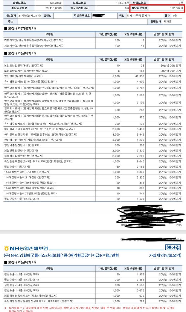 설계 내용은 비슷한데 가격이 농협이 2만원 정도 저렴합니다.
