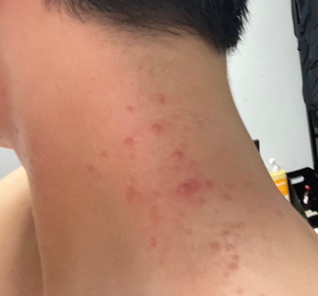 1주전부터 목에서 여드름? 두드러기같은게 올라와요