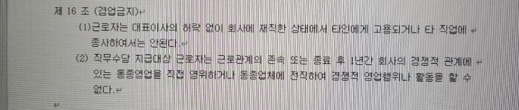 판례는'사용자와 근로자 사이에 경업금지 약정이 존재한다고 하더라도, 그와 같은 약정이 헌법상 보장된 근로자의 직업선택의 자유와