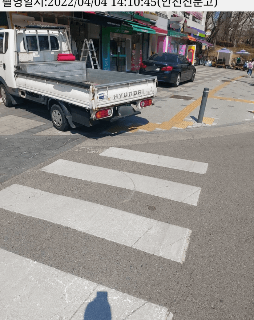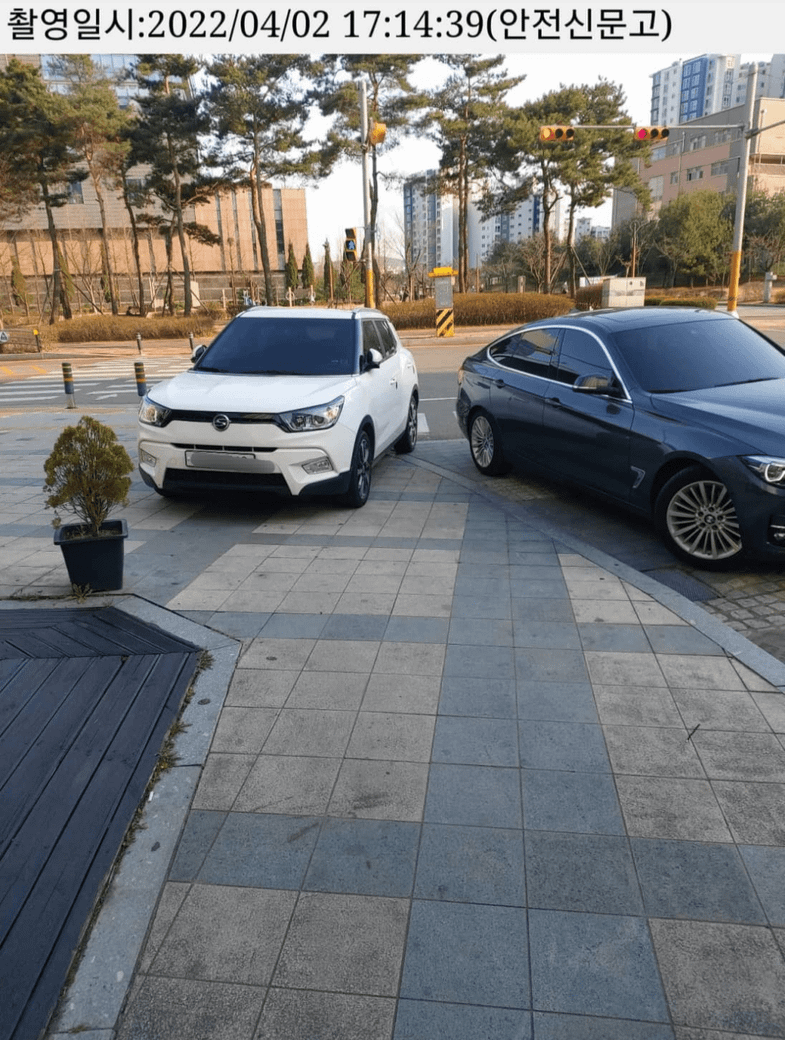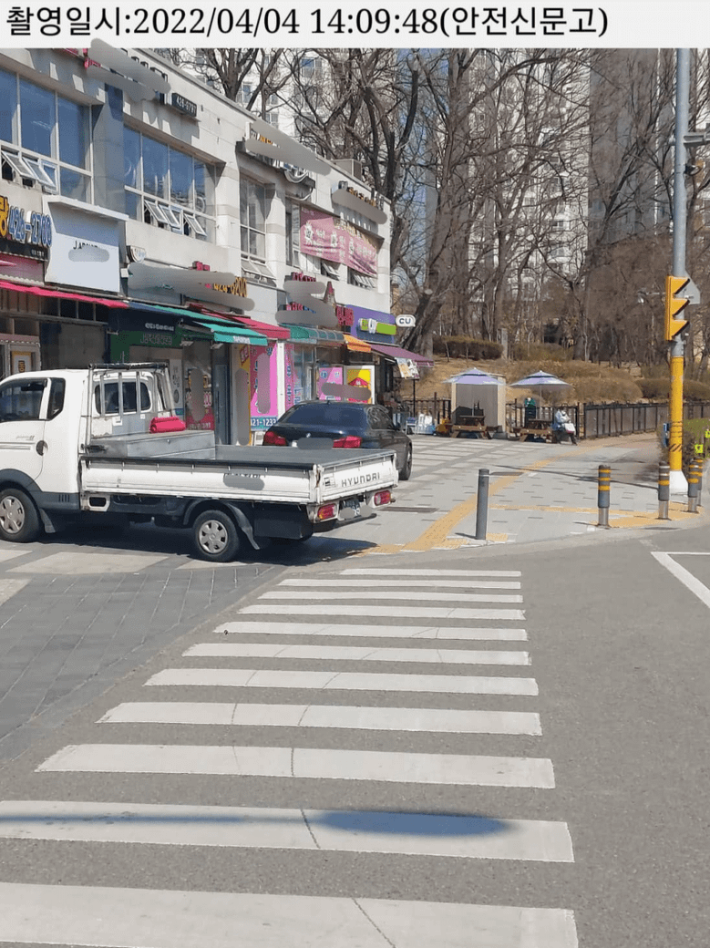 *그런데 재미있는 건, 해당 차량들이 출차할 때 동영상 촬영해서 경찰청앱으로 신고를 했더니 도로교통법 13조1항 '보도통행'으로 과태료 부과가 되더라고요.