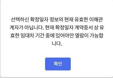 확정일자 부여현황 열람시 이해관계자가 아니라고 뜹니다.