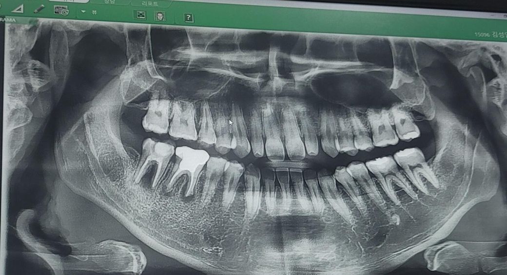 2. 정확한 충치 검사는 파노라마 사진보다는 치근단 사진으로 하는게 좋습니다만 위 사진상 작은 어금니 옆면으로 충치가 있는게 관찰되긴 합니다.