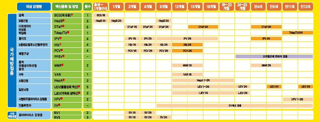 아래 표에 보시는것과 같이 B형 간염은 출생부터 1달 이내에 맞으시면 됩니다.