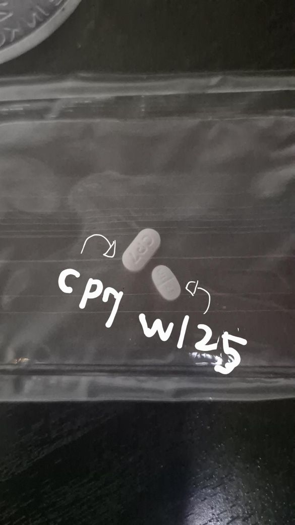 CP7은 위장약 WI/25 흰색정제는 환인설트랄린정으로 설트랄린염산염을 가진 우울증 약물입니다. 어지러움이나 피로같은 부작용을 야기할 수 있는 약으로 말씀하신 증상은 약물 부작용의 가능성이 있어보입니다.