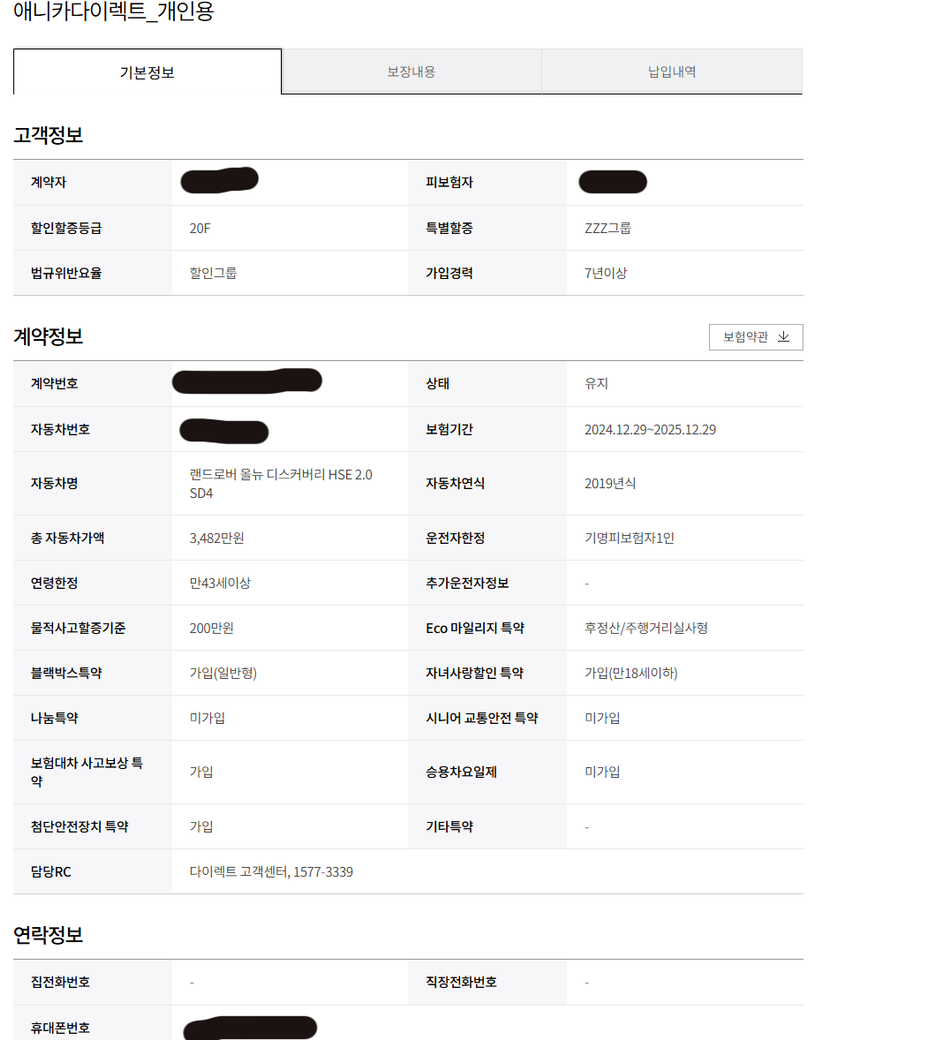 우선 200만원이 할증 금액으로 가입되어있고 대물은 10억까지로 보험들었습니다