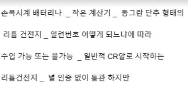 cr 로시작하는 리튬건전지 수입가능 하다고 합니다