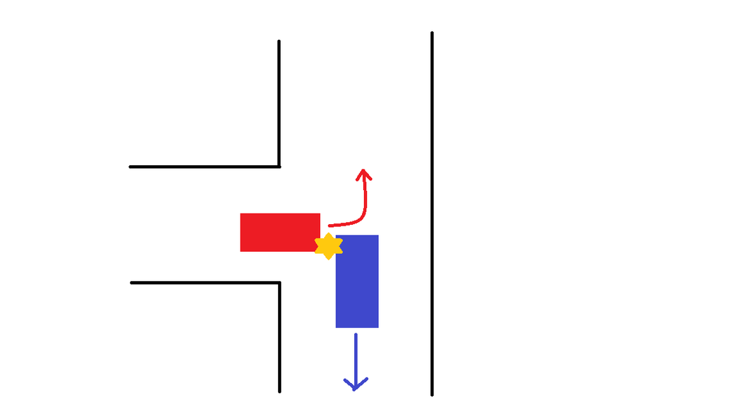 신호가 없는 삼거리에서 접촉사고가 났습니다.
