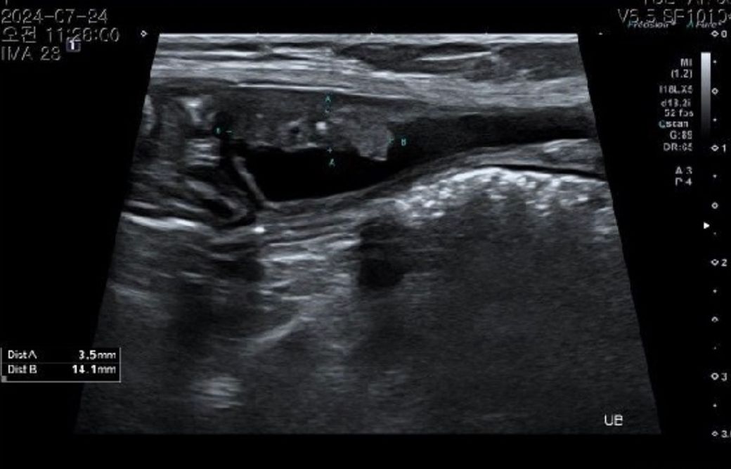 초음파는 엑스레이나 CT, MRI 와는 다르게 검사를 한 검사자만이 판단을 할 수 있는 장비라 첨부된 사진은 별 의미가 없습니다. 시술자의 의견을 따르시기 바랍니다.