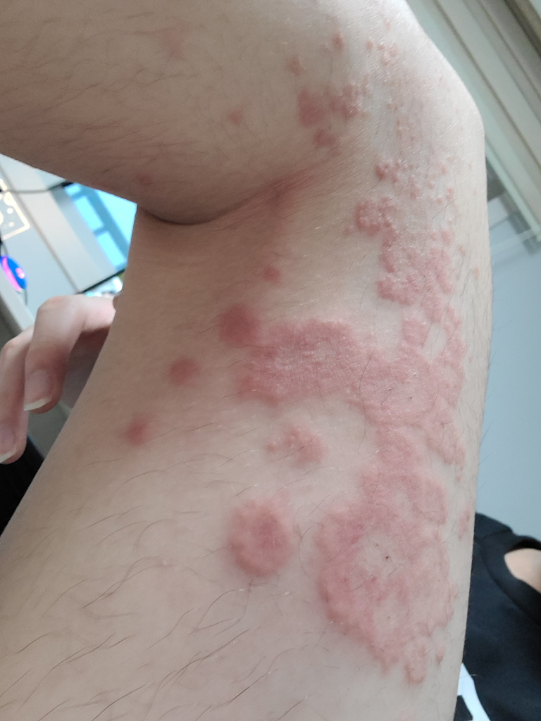이런게 전에 등에서도 났습니다. 지금은 어께 주변, 허벅지에 저런게 났습니다. 허벅지에 생긴건 엄청 가렵지만 아프지는 않습니다. 어께 주변에 있는건 작게 생겨서 별로 안가렵습니다. 피부과 가면 원인 모른다 했습니다. 1년 전에도 저런게 났습니다. 1년전에 다른 피부과 가도 원인 모른다 했고 큰 병원 가라해서 방문했습니다. 원인은 못들었고 약 처방 해줬습니다.