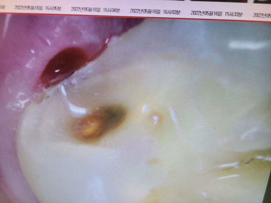 사진으로만 보기에는 내부에 변성된 충치가 남아 있는것으로 보입니다.