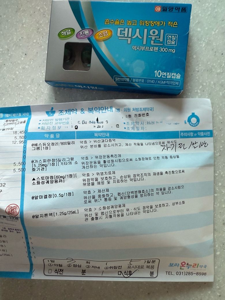 처방전 위에 같이 사진 찍은 덱시원연질캡슐도 복용하시는 건가요?